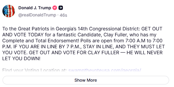 For context of this one is filling in for MTG, whom he still seethes about. Fuller is another Israel backed crony that's been praising Trump's handling of Iran.