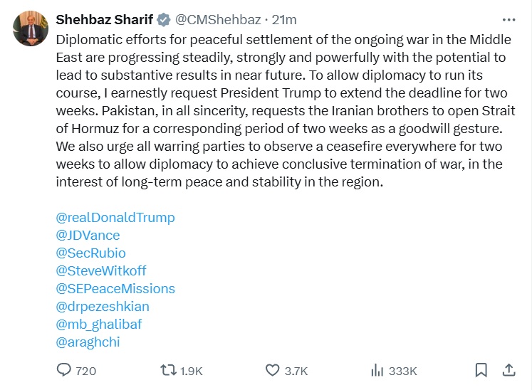 >Senior Iranian Official: Tehran dismisses Pakistan’s request for a two-week ceasefire after realizing negotiator was just a jam boy wearing a turban