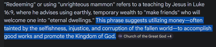 >>62090526parable of the accountant or whatever'redeem unrighteous mammon for good'