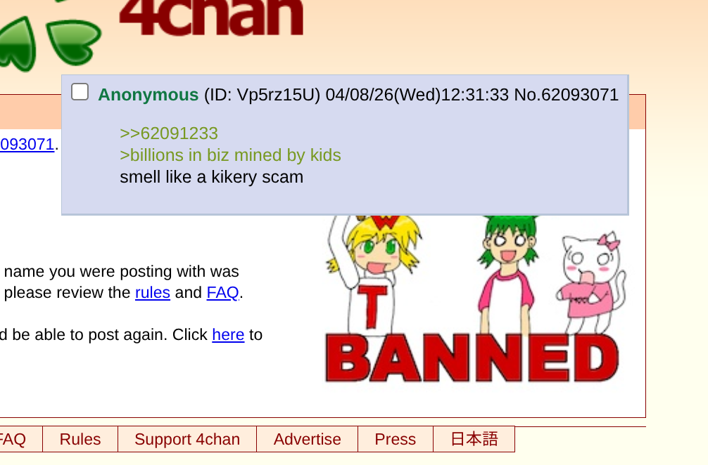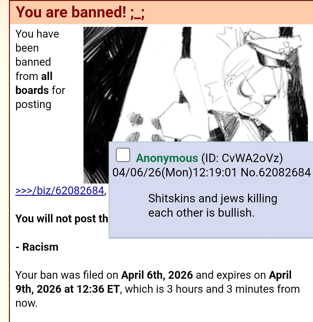 >>62097272The jannys are fucking kikes, they hand out b&s for speaking the truth.