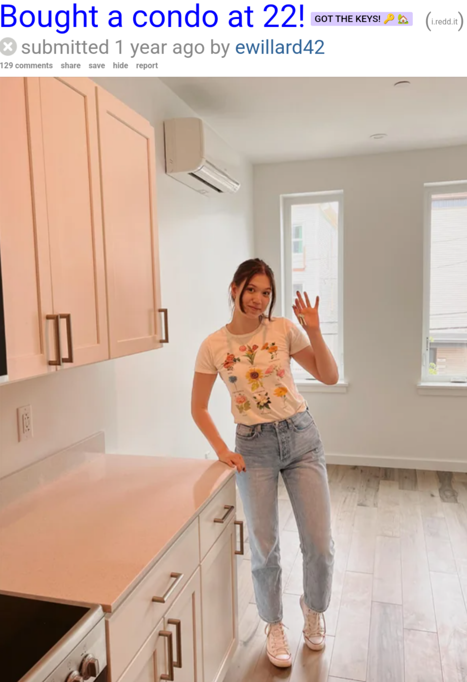 got handed a do nothing 100k/yr hr job right out of college and got a mortgage on a 2 bed 1 bath condo at 3% down more like it
