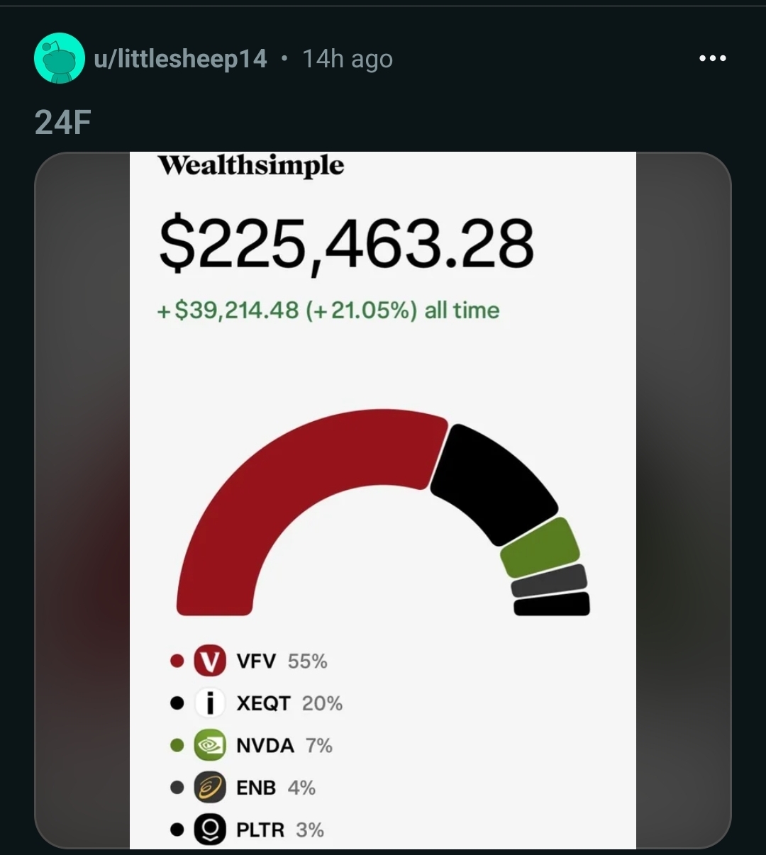 I'm so tired of seeing these types of posts from 20 something zoomers with 200k portfolio and people in the comments giving them asspats. I'd be more impressed if they got it from working hard or making a ballsy trade but you just know they got it from a family inheritance. Yeah I'm salty af, I don't have a cushy inheritance from my parents, I chose a bad career that only makes $20/hr, and only have a 30k networth in my 30s. My life sucks.