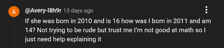 >>62096165i mean it doesn't make any sense, there's a 2 years difference so he's right ig