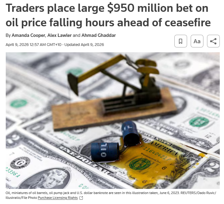 >Shortly ahead the ceasefire announcement earlier this week, a new group of accounts on prediction market platform Polymarket made highly specific, well-timed trades betting there’d be an announcement about a halt in fighting for 7 April. >Some quickly pocketed awards, which amounted to hundreds of thousands of dollars in profits combined.>Exchange data and Reuters calculations also showed an unidentified trader or traders bet $500m on Brent and WTI crude futures in a one-minute period shortly before Trump called a five-day delay on 23 March attacks on Iran’s energy infrastructure, after which oil prices fell 15%.What a coincidence, again. Out of nowhere, to the surprise of everyone, in the next fortune ranking you'll see Barron over Musk.