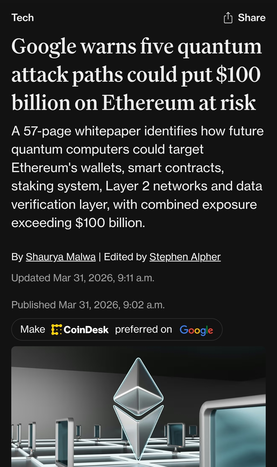 Google releases some meme tier articles/research about quantum computers (the ones they're working on) in an attempt to pump their bags at end of Q1