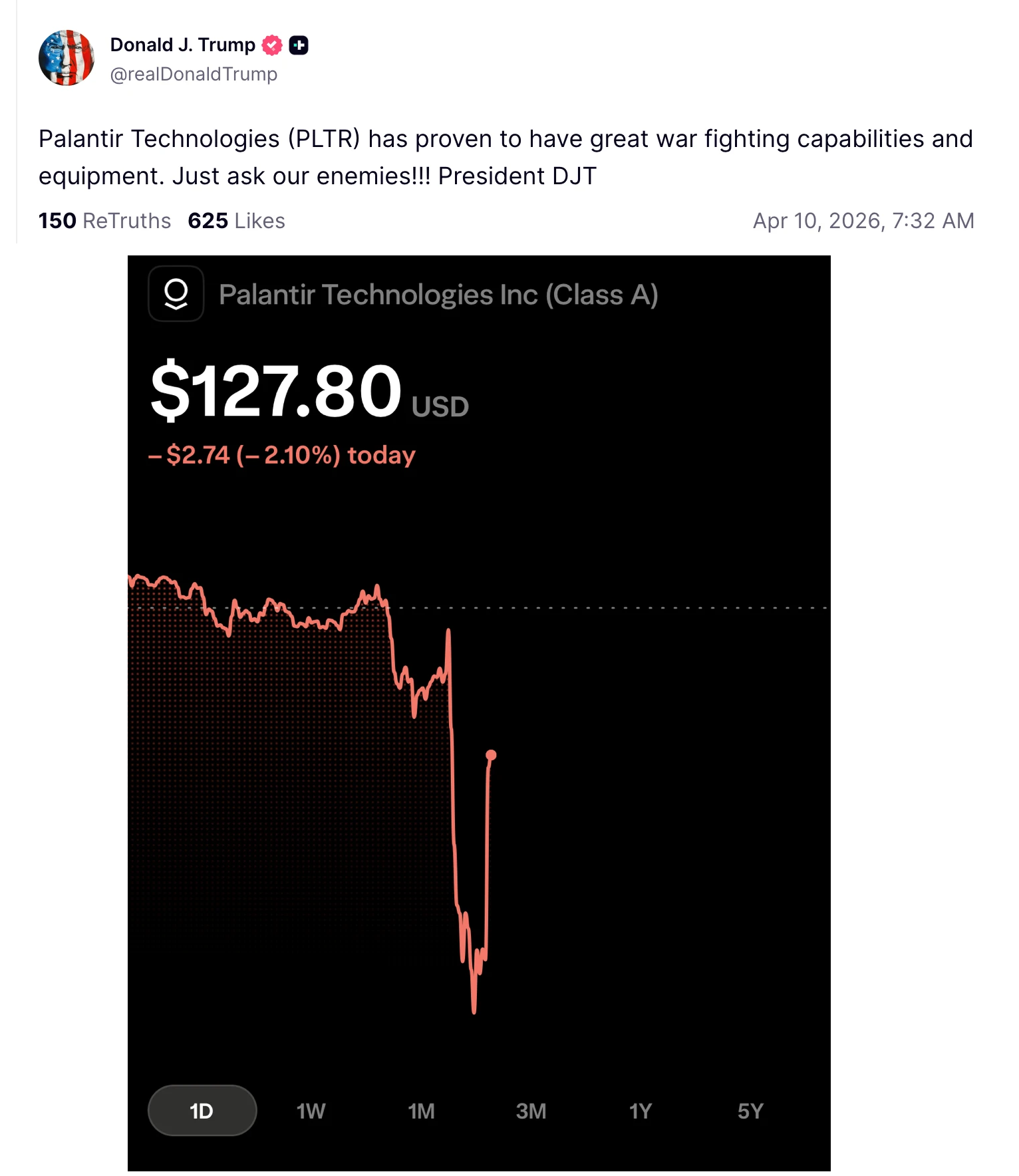 If palantir ai was that good it would have watched the 1h chink video about how usa will fail in a war VS Iran. Taco meme is out there and there is no control about It and this will be the downfall of Trump. Americans are machiavelic per their nature they don't care about the means you use but you have to actually win to earn their trust and Donald cuck Trump lost hard. Probably Netanyahu banged Melania and made him watch.