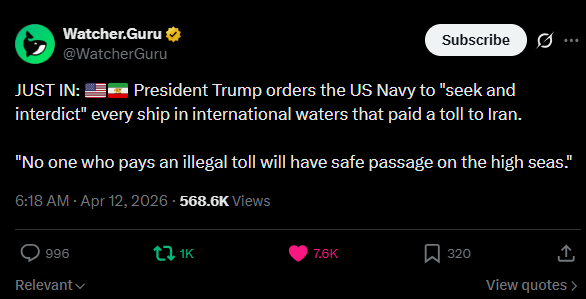 Feels like there is no way this blockade goes through, but this is bad either way because things aren´t de-escalating.