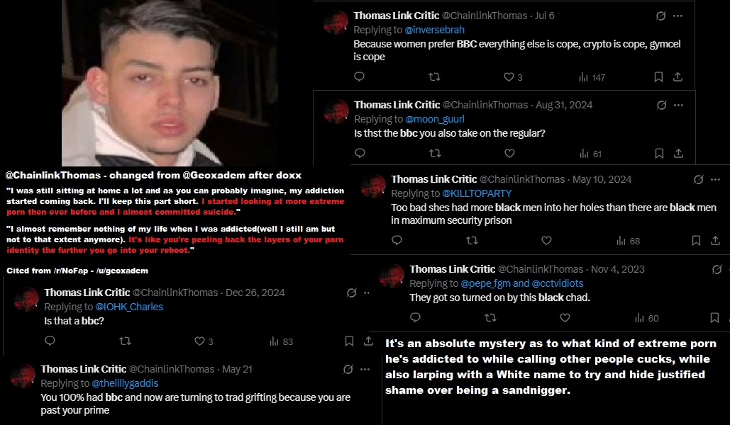 >62108461>62108470>62108481>62108549>62108566>hurrr chainlink = wlfi nowPic related is who makes this twitter screencrap spam btw. An actual sissy gooner obsessed with watching niggers fuck women he likes