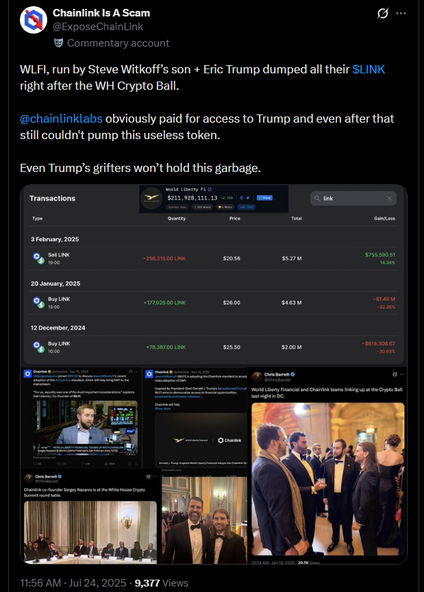 exposed, do you think Chainlink regrets hyping up their partnership?