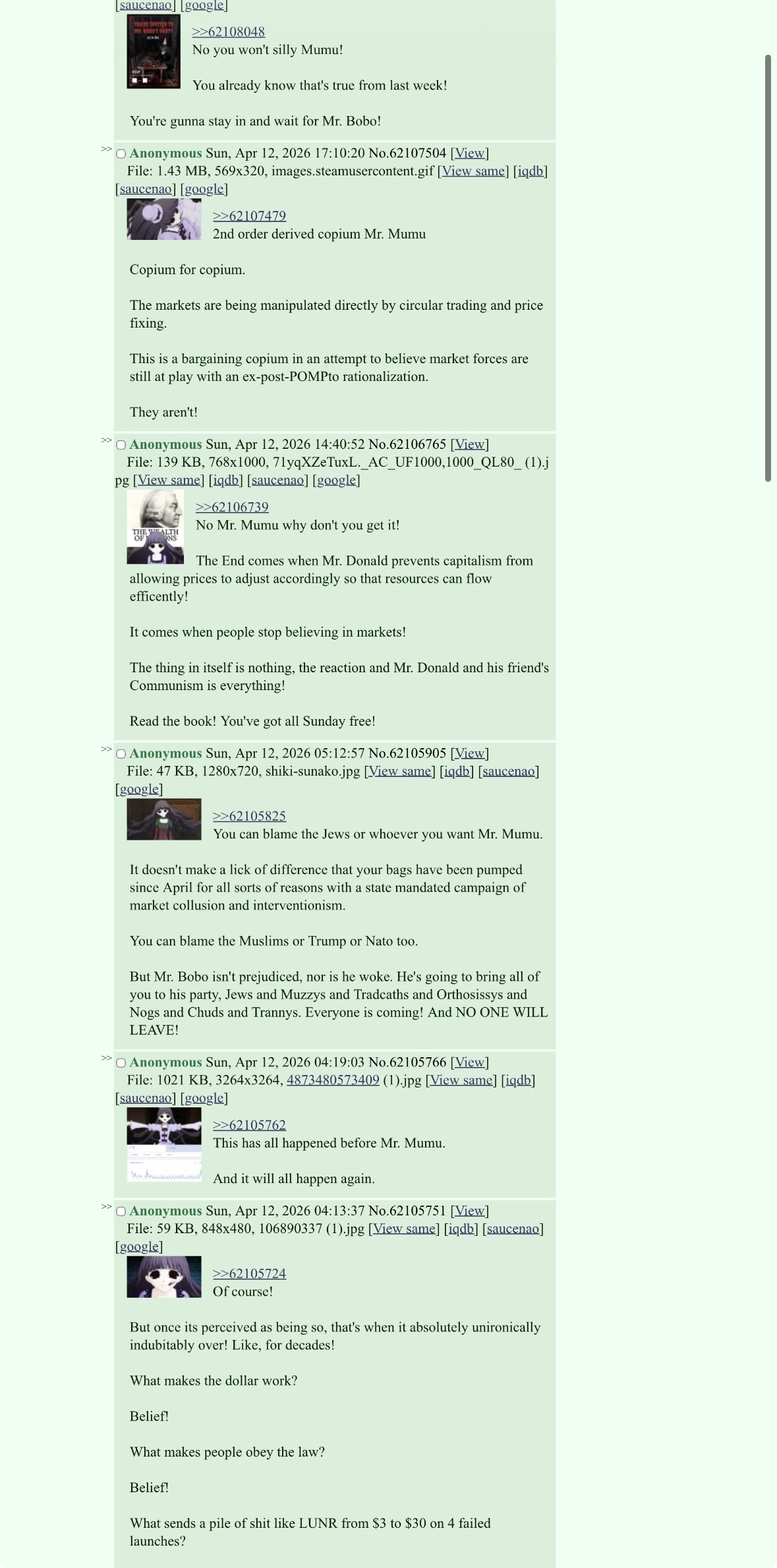 They're losing a lot of money listening to a schizophrenic chinaman, jokes are their only currency at this point.