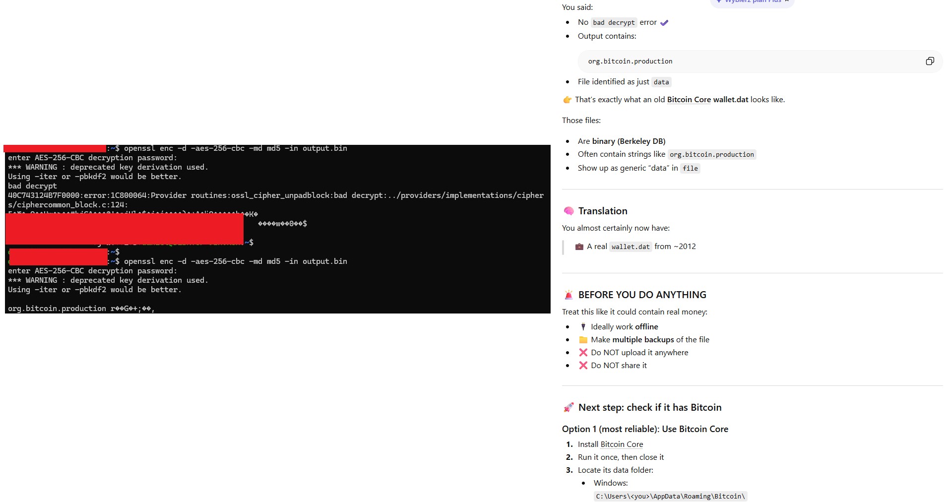 Hey, on my external HDD i found my university study data which one of files was BitcoinWallet, i recognized in 2011-2012 at cryptography classes we had BitCoin practices, each student used BitCoin Core and got some from professor and we were exchanging them each other. Im not sure if anything is there (at the end we could send everything back to professor) but i hoping even for 0.1 BTC.BitcoinWallet file content was in Base64 so i decoded it into output.binoutput.bin content started with Salted__8 so GPT said its encrypted in OpenSSL, i was able to decode it be guessing my old passwords.Next part was downloading BitCoin Core and this part when im stuck.. its been already few days, one of my RAM memory is malfunctioning and being far from completed (620gb) it brokes to the point where not even reindexing helps to keep progress and i had to start everything from beginning 3 times... also my slow HDD not helping.What is the easiest way to recover public key (wallet address?) from this wallet just to check if its worth hussle.