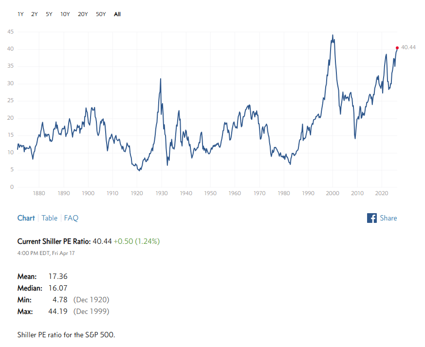 Shiller P/E ratio above 40 again