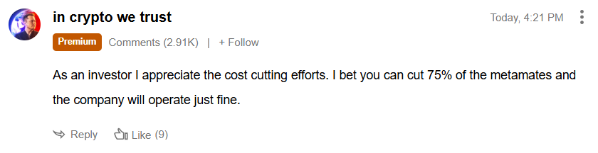 sometimes the SeekingAlpha comments are legit funny. here's this guys comment on Meta layoffs lol.