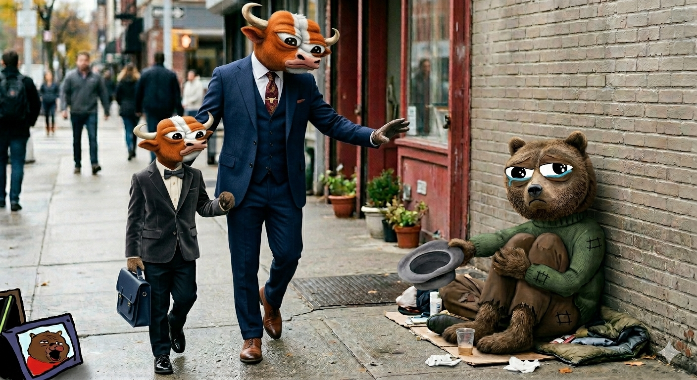 Imagine being a doomer. You know the reality of the current situation and you know there is nothing you can do to stop it, but you refuse to enter the market as a bull to scavenge any and all capital you can while the scavenging is good and the market is euphoric. No, you doom yourself to sleep instead and complain that life is not fair. You didnt "grab the bull by the horns" when it was at its utmost critical time to do so. For your own survival. For the future of you. Like a motorcycle rider who gets target fixated on the turn, his survival reactions squeeze the brakes causing the motorcycle to stand up. He continues to look at the place he will crash, and then does so. You see your own doom and make it reality for yourself.