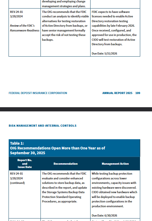 >>62128126https://www.gao.gov/products/gao-26-107996Financial Audit: Federal Deposit Insurance Corporation Funds' 2025 and 2024 Financial StatementsGAO-26-107996 Published: Mar 26, 2026. Publicly Released: Mar 26, 2026.