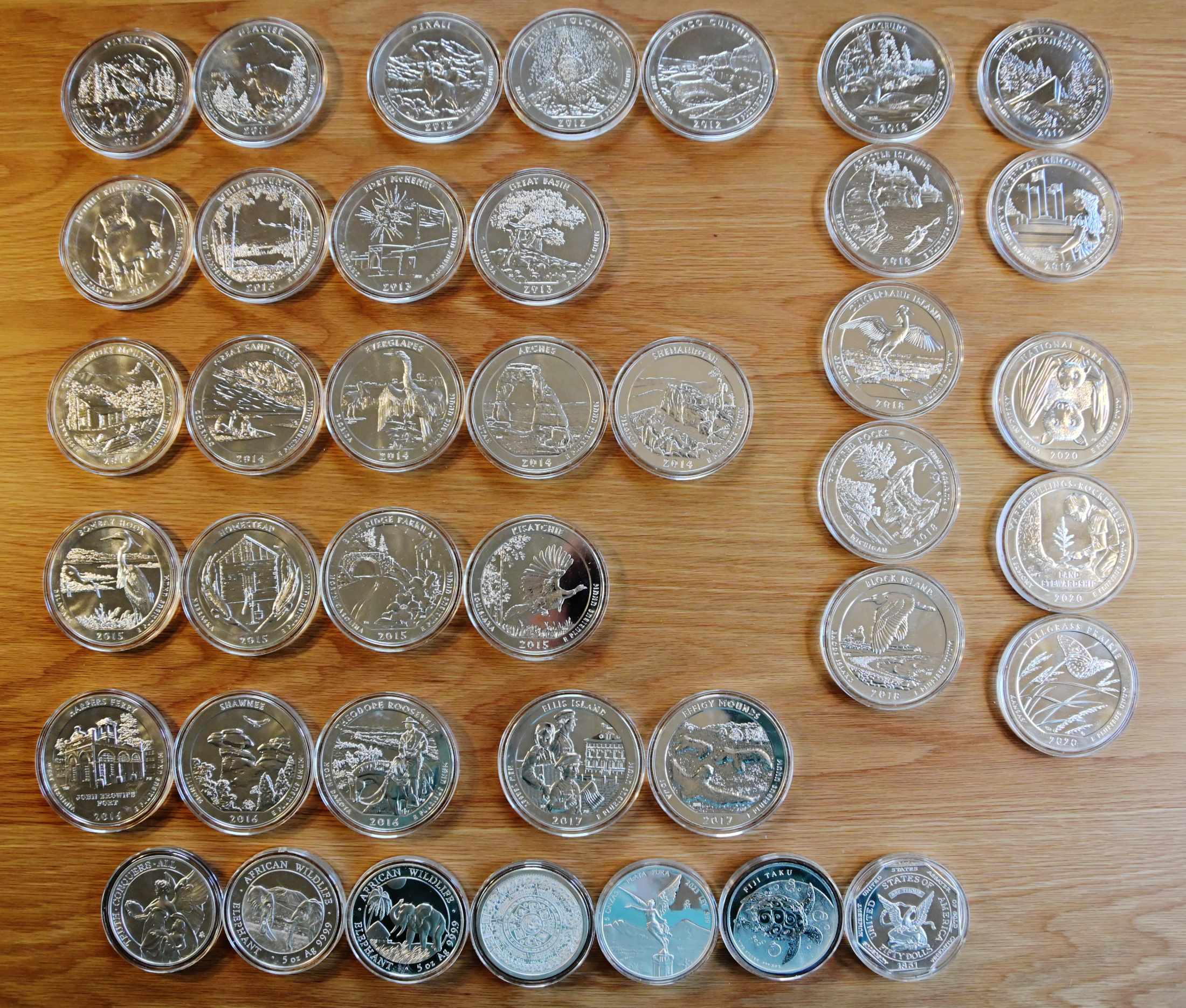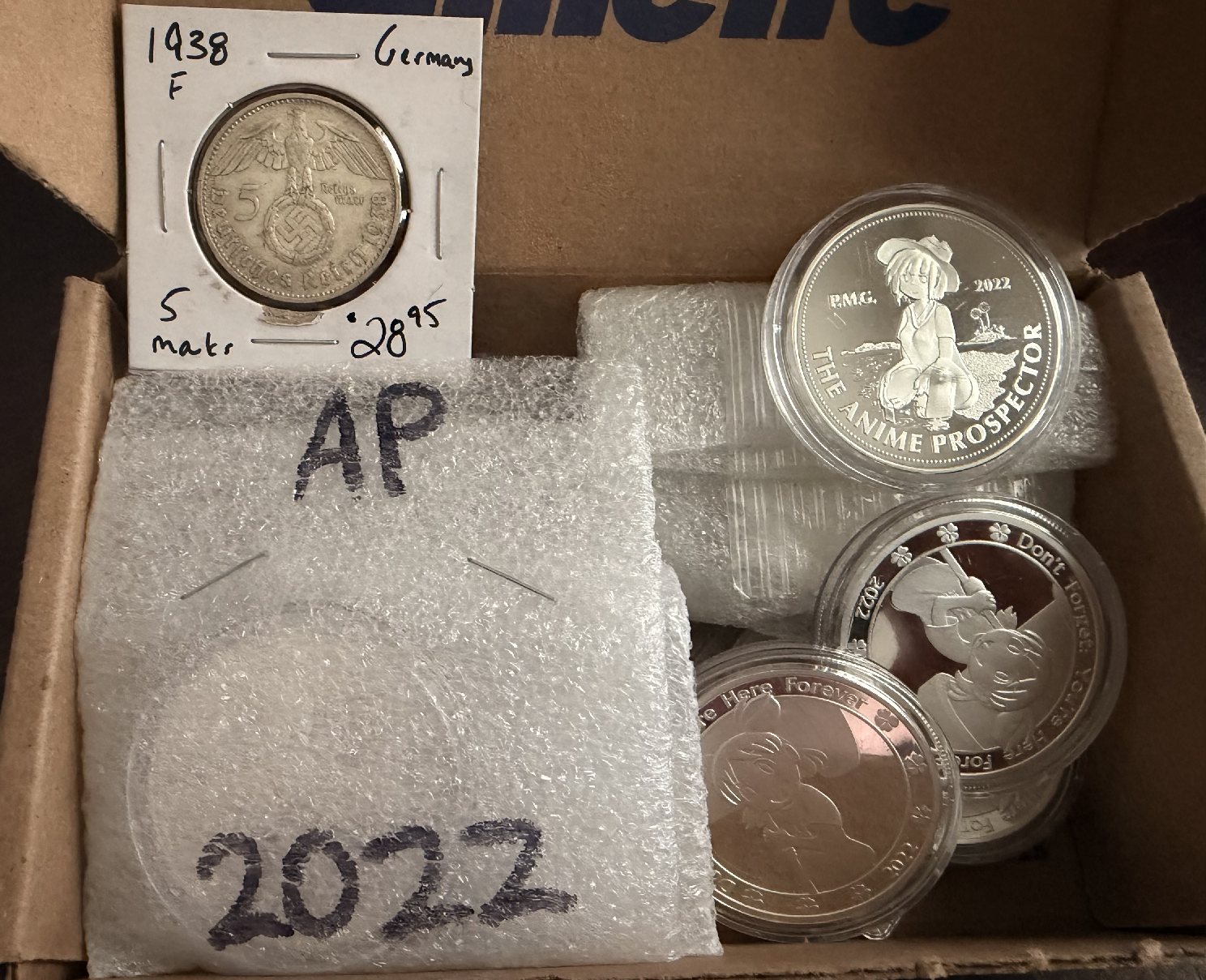 >>62130214>i'm going to need more info on this oneIt's a Humbert 50 Dolls replica octagonal piece.>>62130238>and for the atb coins, are those mint capsules or air-tites?Both. Some came with, some I had to buy Air-Tites or similar.