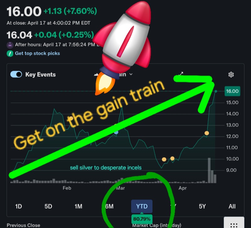 >>62130543>>62130367Here's your daily reminder that you can get rich by selling silver to desperate losersMy good fren minty does it by selling frog roundsMy other good fren IQDELETE does it by fractionally owning silver minesEtc etc