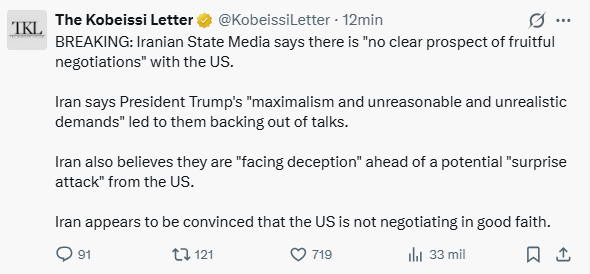 >>62132336When the ceasefire ends with no deal the stock market will crash. idgaf about the war beyond these facts. I'm so bored of this shit they're obviously stalling so insiders can keep profiting off oil. They should have implemented the blockade immediately. Bombed their infrastructure and sanctioned Iran into the ground. This war would've ended weeks ago. Now we have to wait weeks for obvious actions to take their course. Israel was right.