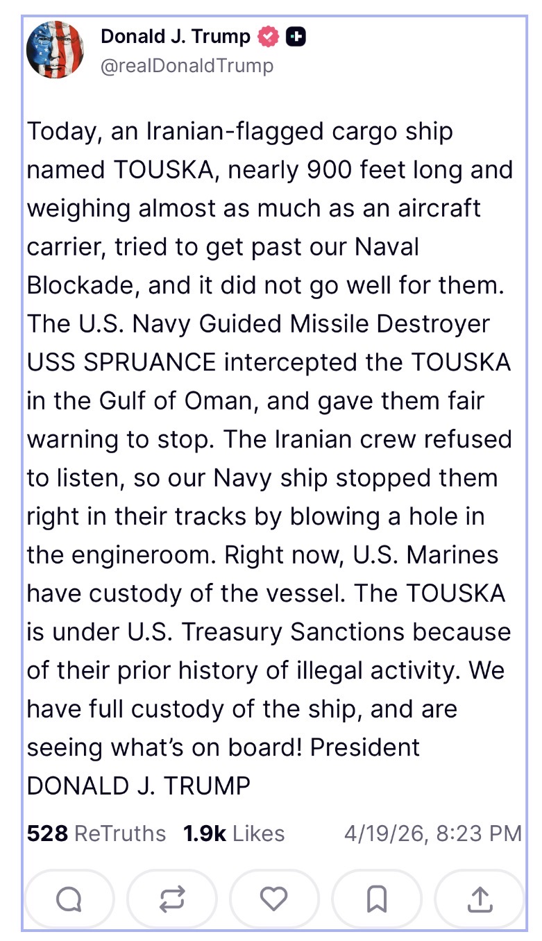 >he tweeting againapparently iranian ship seized