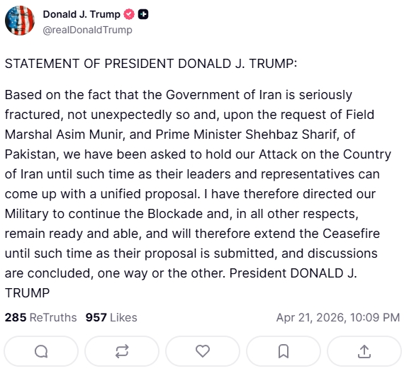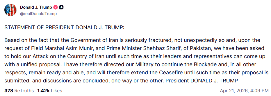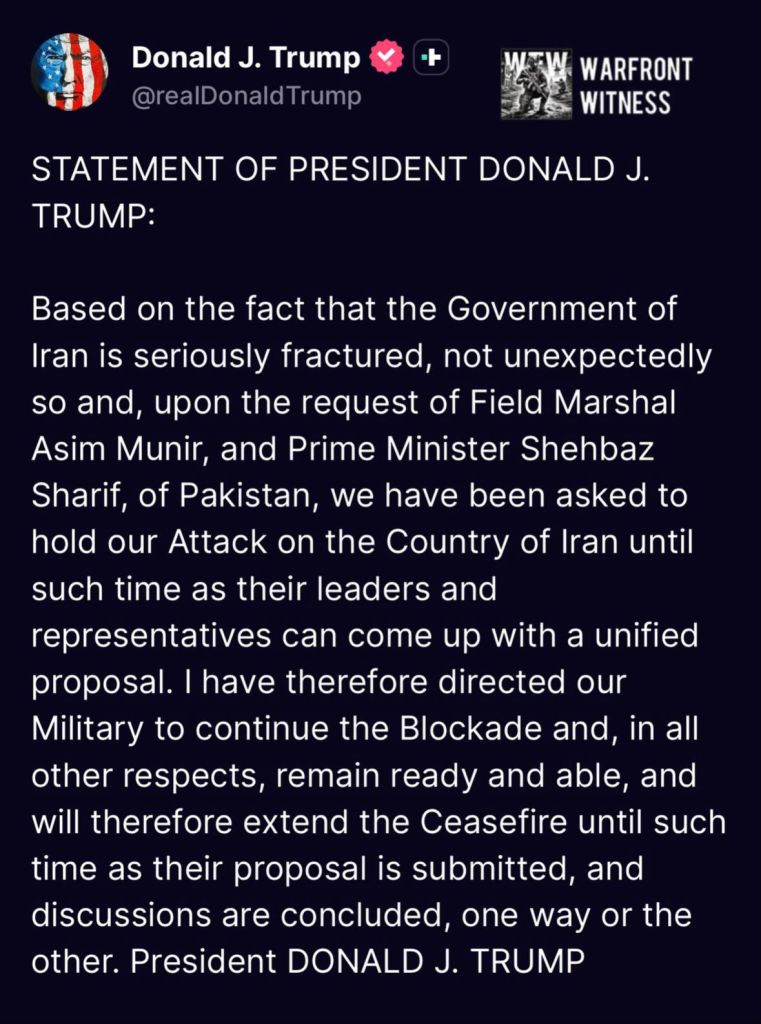 IRAN AGREES TO EXTEND CEASEFIRE, IMMEDIATELY OPEN HORMUZ — AXIOS