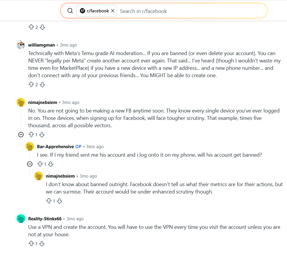 >attempt to use facebook marketplace>BANNED, META AI BELIEVES YOU ARE A SCAMMER BECAUSE YOU'RE A NEW ACCOUNTIf facebook wants their stock to stop bleeding out they need to let people actually use their faggoty website.
