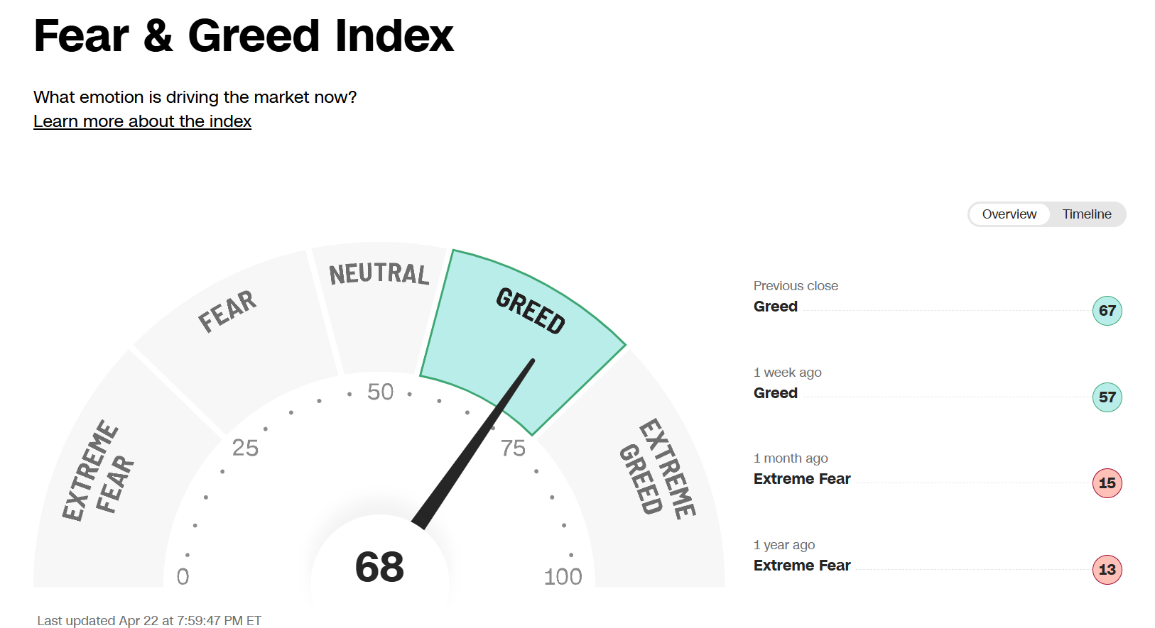 >>62145712tickers are far more diverse than crypto, so making an accurate fear and greed index would be unreliable.The closer you can get is watching the S&P 500 map https://finviz.com/map.ashx and seeing how red it looks