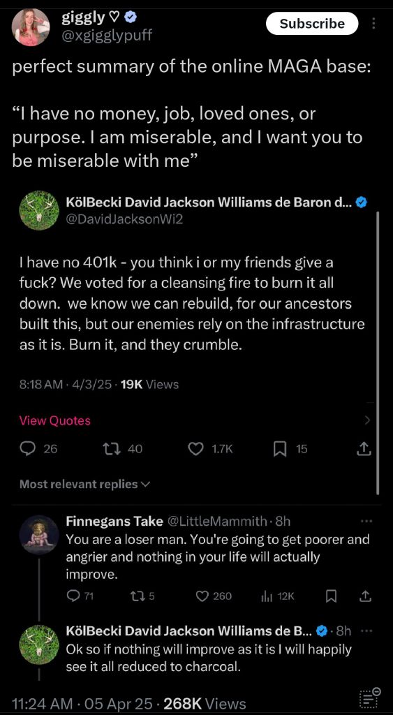 I thought anti-MAGAs whole idea was to help people with no money, job, loved ones or purpose