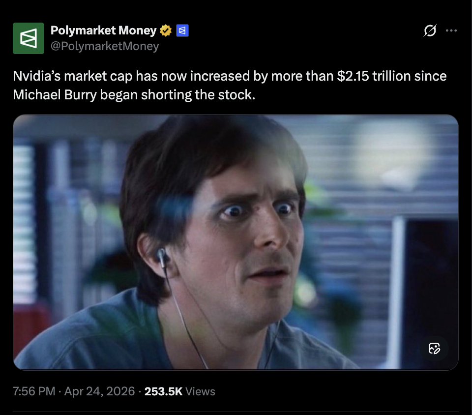 >>62157151The time to short nvidia is when AMD/intel decide to focus on actual graphical techniques instead of the fake frame rat race. That will be the signal that the AI bubble is about to pop, because it means competitors are turning away from AI.
