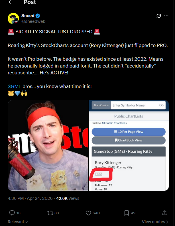 >>62154432Still comfy waitin' and holdin'.>SummaryGameStop Info>Complete corporate revamp by Ryan Cohen>Debt free with positive increases and reductions (see ER); $9.0 B cash and cash equivalents on hand + high inventoryDRS & Computershare>~66.2 million shares of ~448.4: 15% total held by Mar 18, 2026>~67.0/~448.0: 15% by Dec 5, 2025>~66.7/~447.7: 15% 9/5, ~68.1/~447.3: 15% 6/5, ~69.5/~447.08: 16% 3/19>~71.0/~446.8: 16% Dec 4, 2024>~72.8/~426.5: 17% 9/4, ~74.6/~351: 21% 6/5>>~75.3 of ~305 25% by Mar 20, 2024,>~75.4 by Nov 30 2023, ~75.4 8/31, ~76.6 6/1, ~76.0 3/22 Vs Cede & Co>>Previously...>End of 2021 through 2025 data:https://pastebin.com/raw/8Kzb1wYBUnfuddable>Shorts never closed and there exists more fakes than real shares>'MOASS' is a matter of timeFurther information can found by reading the OP or DYOR!Reply to this pasta for any confusion.WGAMI!Other news/reminders:Wednesday RRP: 0.538B, 16P = 0.033625B perThursday RRP: 0.114B, 7P = 0.016B per (roughly)Friday RRP: 0.082B, 4P = 0.0205B perInvestor site links to SEC for old filings, FAQ for warrants exp [Oct 30 2026]>4-for-1 Stock Split Form of stock dividend (Rec: Jul 18, 2022; Dist. 21st AH)^2022-07-06 8-K>Q4 and FY25 8-K/10-K^2026-03-24>Proxy Statement: Stock given in comp issued as RSUs that vest in quarterly increments over 4 years.>798 pg SEC doc confessions of FIs/MMs/HFs/DCEs/Swaps Counterparties etc on short selling transparencysec.gov/comments/s7-11-23/s71123-typec.pdf>100 page comparison DDhttps://pdfhost.io/v/05TEEk3U6_MOV_GME_Comparison_Doc>Legacy linkswallet.gamestop.comnft.gamestop.comwww.gmedd.com/report-model (Nov 2021)>Use archivesAvoid DSPP:reddit.com/r/DRSyourGME/comments/12pfm9s/>GME shorted percentage of float as of Jan 15th, 2021: 226.42%www.rosenlegal.com/media/casestudy/2289_Robinhood%20-%20Initial%20Complaint%20-%20Market%20Manipulation%204835-8623-1514%20v.2.pdfPlease don't feed spammers and sliders.