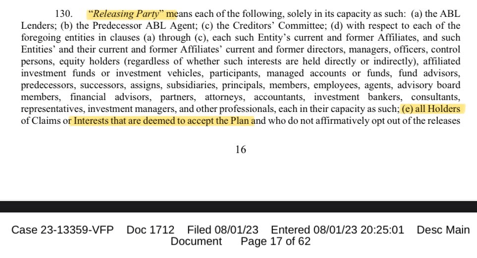 >>62158389Why is RC a releasing party in the third party release instead of an exculpated party?