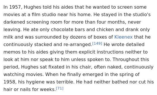 Any "eccentrics" look like amateurs compared to Howard Hughes.