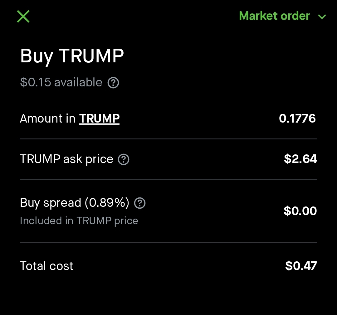 TRUMP coin barely up two pennies @ mid day. Come on goys, are you trying to make a fool of me here? It's a good thing I only purchased 0.1776 in fractional shares.