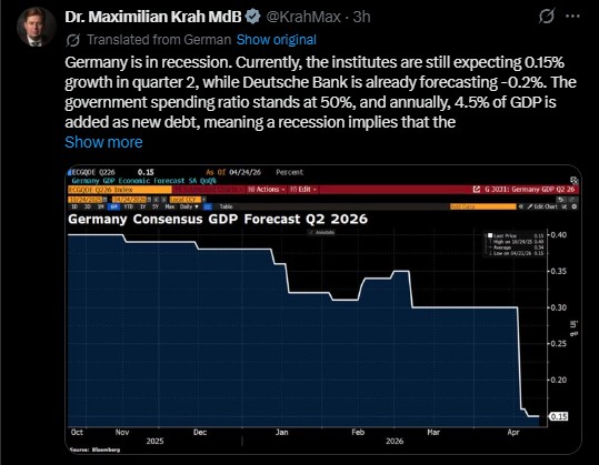the entire west is. germany just doesn't get to hide behind tech stocks, real estate and medical costs as "GDP" so they are the first to show negative.