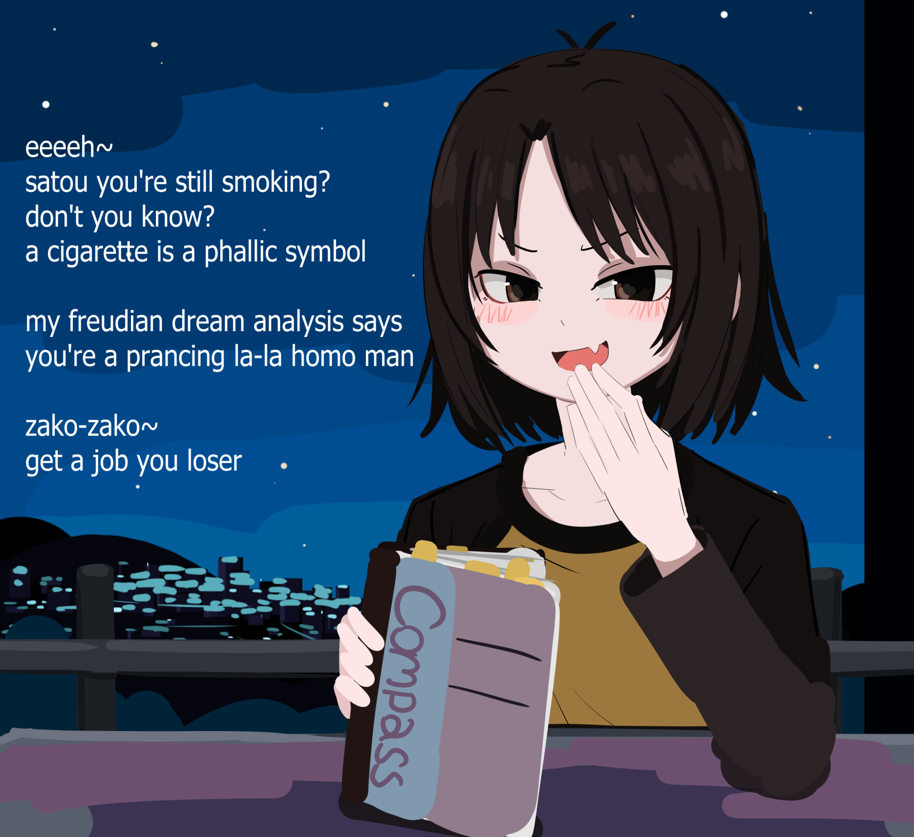 >>4451379>If you could tell your waifu one sentence right now, what would it be?"I love you">>4451484>Have you ever used a program like Koikatsu to model your waifu?I haven't tried it myself, but someone else on pixiv made so many that i couldn't help but download all of them.>>4453159>Does your waifu have a family member who's difficult for her to get along with?Her mother can get quite violent with her. She literally kicked her ass for being too "noisy", and only allowed her to come back if she does her her "loud cheering" elsewhere, which led to Nashiko calling her father and he foresaw this and prepared a lodging for her on the condition that she cleans up the place. Her relationship with her isn't estranged, since they can eat normally together at the dinner table without any issues. >>4451150> Is there a day of the year that's particularly difficult for her? How would you support her through it?Nashiko is normally energetic and joyful, if there was a day that would make her uncomfortable and moody; i would support her as hard as i can. There are a lot of things to cheer up like eating sashimi, watching anime, or playing mahjong. First, i would either invite her to a ramen/sushi restaurant, or cook it myself, once she's feeling a little better i would take her outside and spend some valuable time together; ending the day with playing mahjong while we mostly goofing around and laughing together. Comment too long. Click here to view the full text.