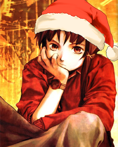 I've got a couple of Lain Christmas pics, but none sound quite like what you're describing. This might be the closest.