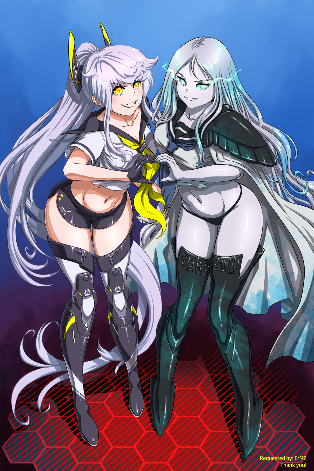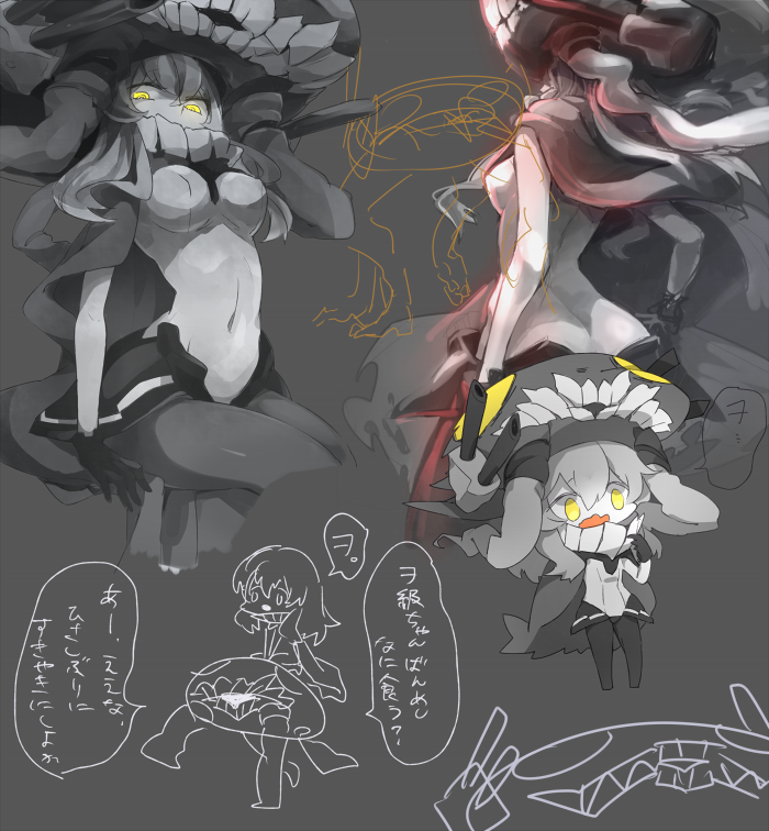 More abyssal commissions!Airfield Princess and Ta-class befriended some strange girl that claims to seems to dislike the shipgirls.