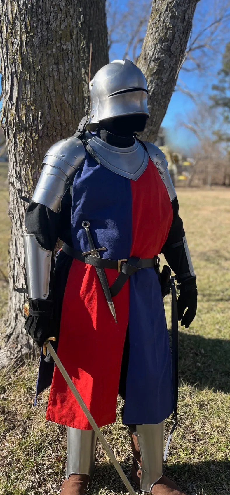 So this gorget has these belts that fix to the spaulders, but they leave a bunch of belt just jutting up by my head. Anyone know what to do with those? Also any other recs for what to add? I think I'll get a cream-white gambeson some day because it's more authentic than the black. I'd like to get a wool tabard and cloak in a templar style, but the only ones I can find are sold in Germany and they won't export to USA because of tariffs.
