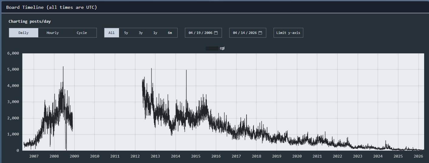 People aging out of the hobby and 4chan being well-known enough now that most people would disown you if they found out you visit here
