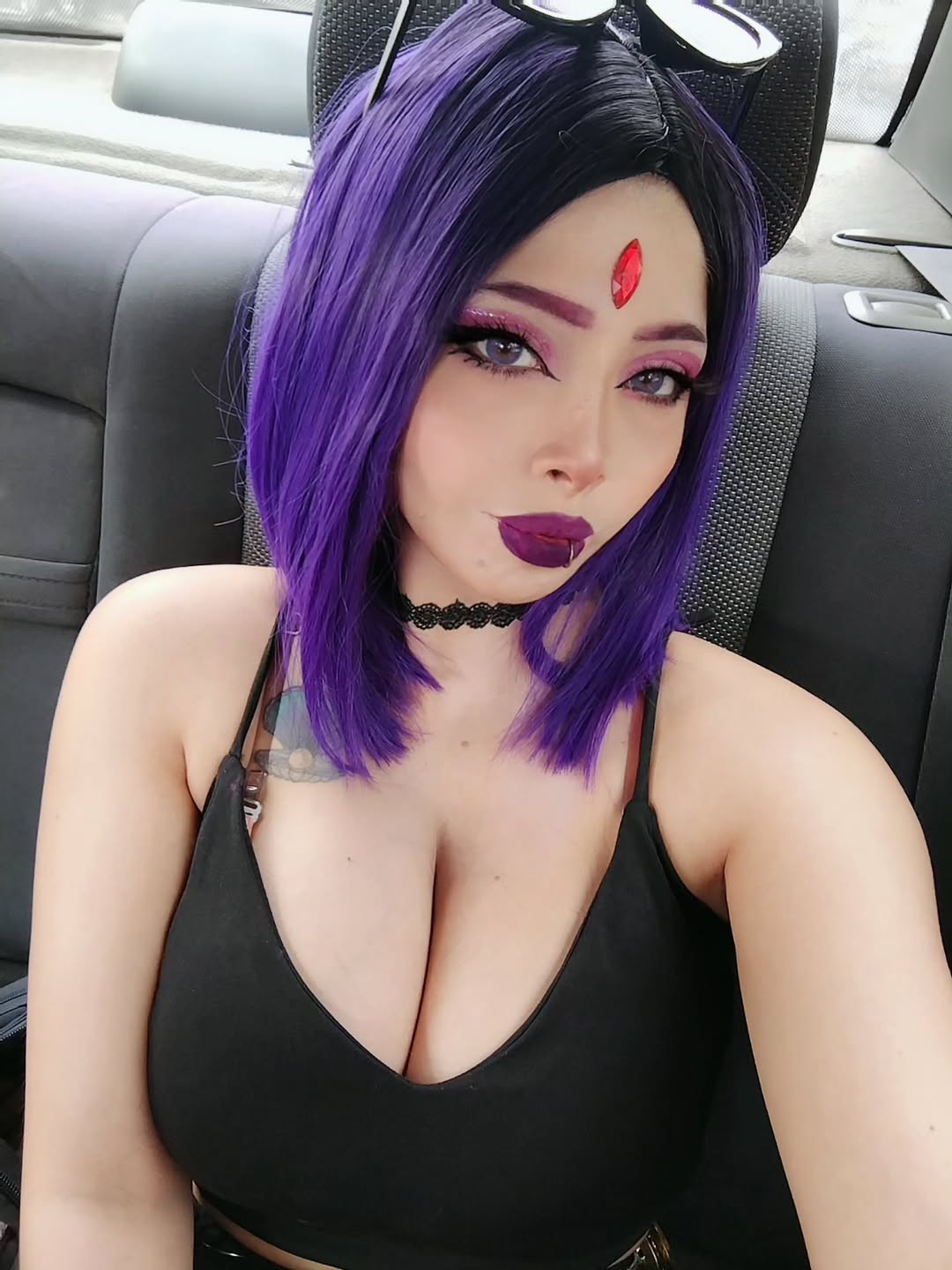 Raven cosplay, really hard to get a good photo of with boobies because the boobs push out and make it stretch and look weirdI liked it despite that