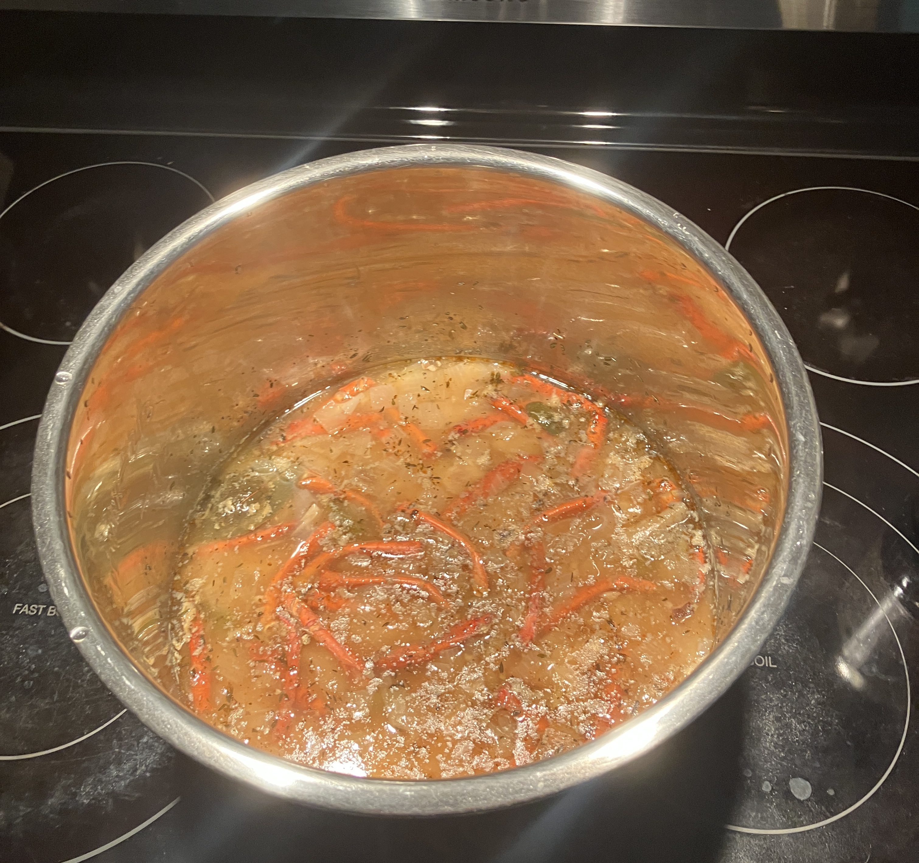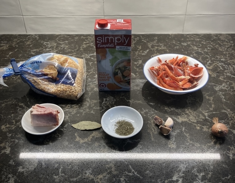 >2 cups split peas >lobster legs>bay leaf>3 garlics>1 small shallot>4 cups broth>bit of ham>1/2 tsp thyme20 minutes instant pot. Try it yourself.