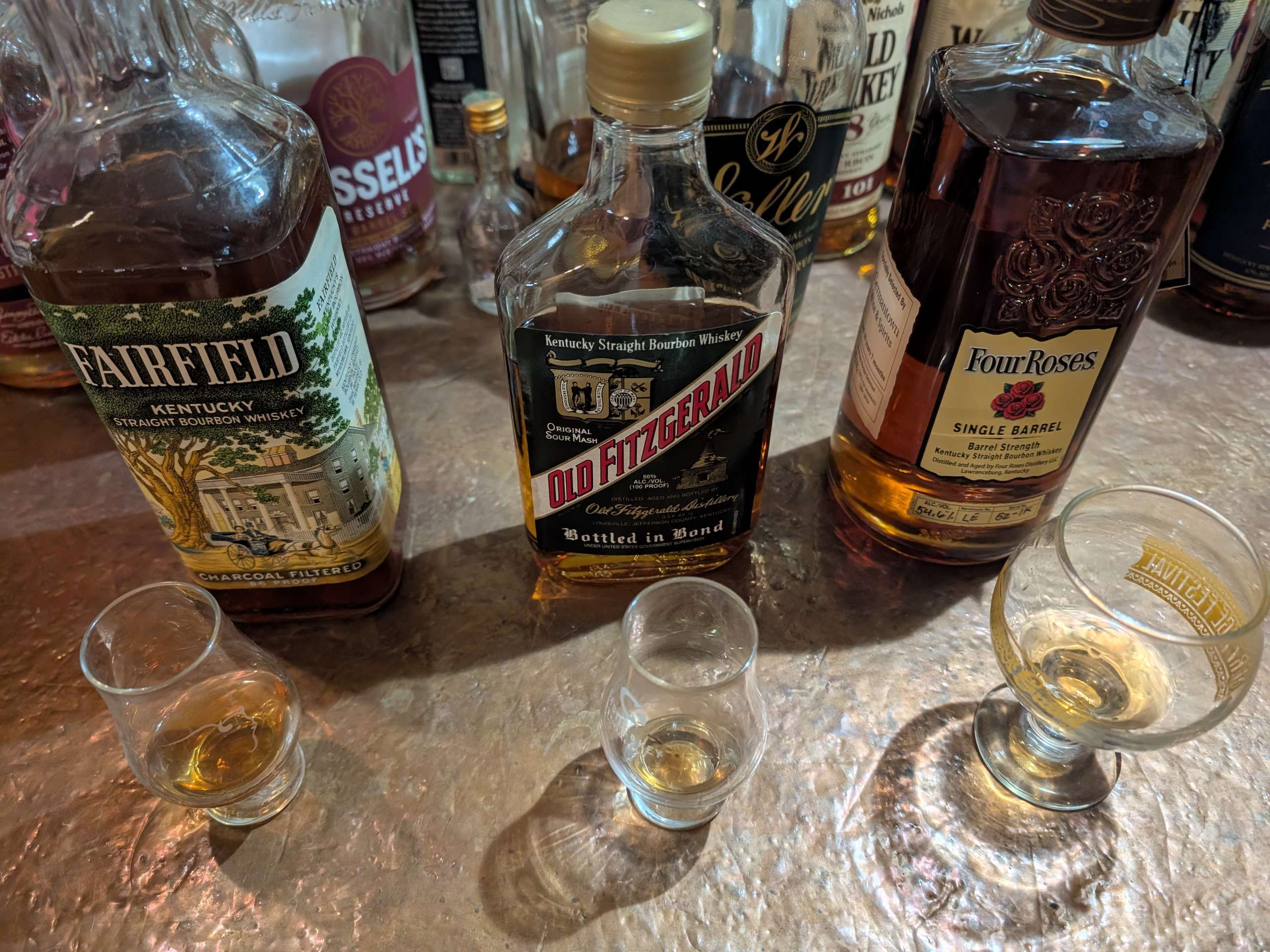 >>21791910>LIGHTNING ROUNDWe take another taste of the 1992 and check in on a 10yr7m OESK pick. This was a hunch, and there could be closer things in the world, but damn it's a hell of a lot closer to the Stitzel than buffalo trace is. Basically great tobacco, leather, sugar, vanilla with a tiny bit of varnish due to the age. Doesn't quite have the unique mint thing going, but I thought I remembered Four Roses actually being pretty fucking similar and yeah, not too bad as a match. Of course it's ryed and not even a wheated bourbon, go figure.>what the fuck is "Fairfield"? Glad you asked. So back in the 90s when buzz about the Van Winkle brand was starting to get going, a lot of people remember this as being the best time period for it. There was a batch of bourbon at one point made by Old Boone Meadowlawn in the 70s. It was bought by Wild Turkey who were going through a crunch in the late 80s/early 90s as they got ready to release some new brands and their sales were climbing. Eventually, they released these Old Boone barrels because the profile didn't match up anyway, and the Van Winkle bought it pre-Buffalo-Trace and released it because they liked it and it characterized their 1990s stuff. Whoa, more varnish. Some stewed spicy tomatoes almost bordering on that minty flavor. The mouthfeel is shit because it's 86 and charcoal filtered but you can see how it bridged the gap. It's all those sweets and almost like jambalaya. I bet when they bottled this as Pappy 20 at a higher proof, it really was good as hell.This concludes my exploration of the Weller thing, hope you liked it. I was already drinking before this and I am pretty fucked up now, merry christmas
