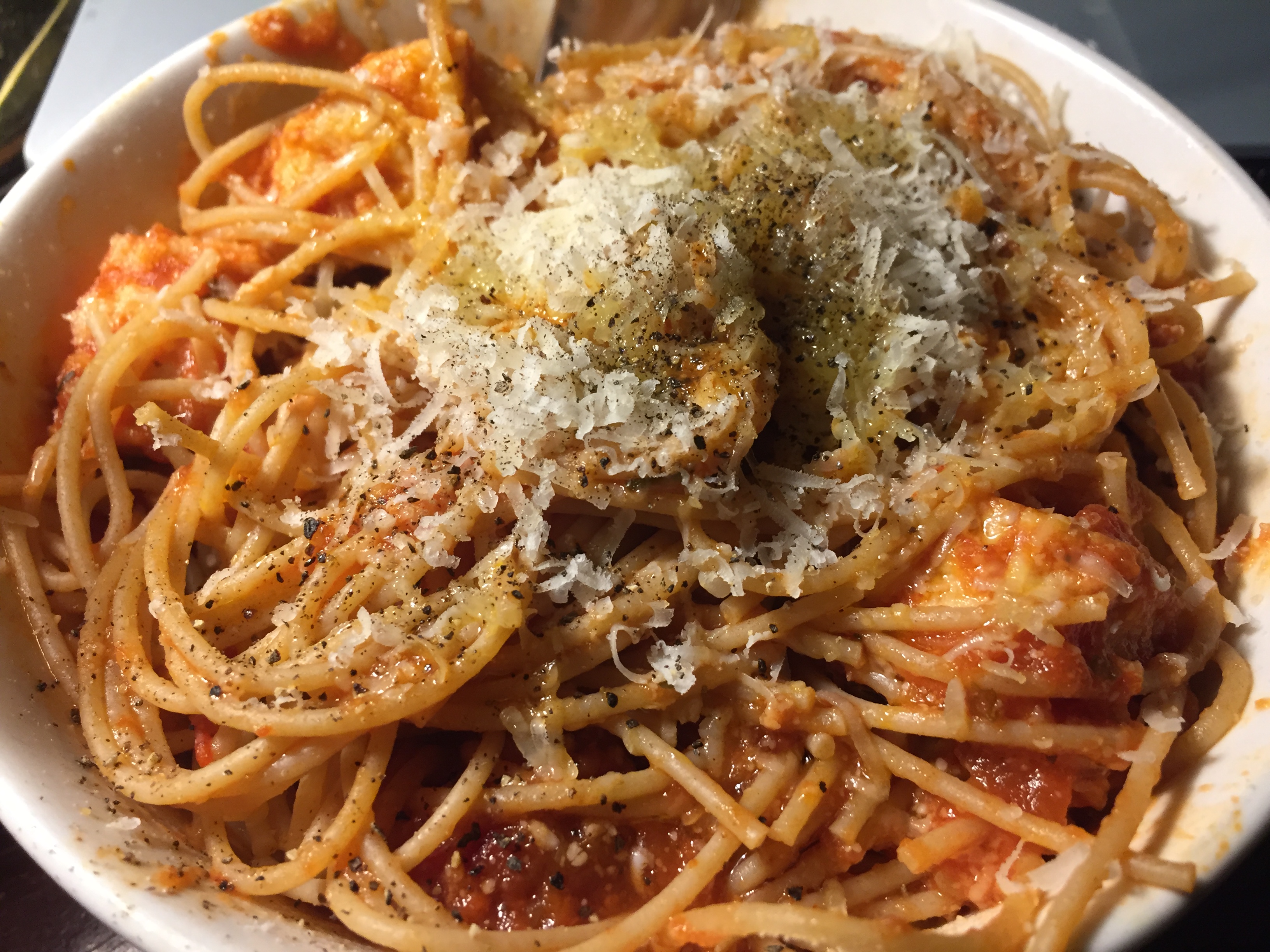 Grated parm, olive oil, black pepper.