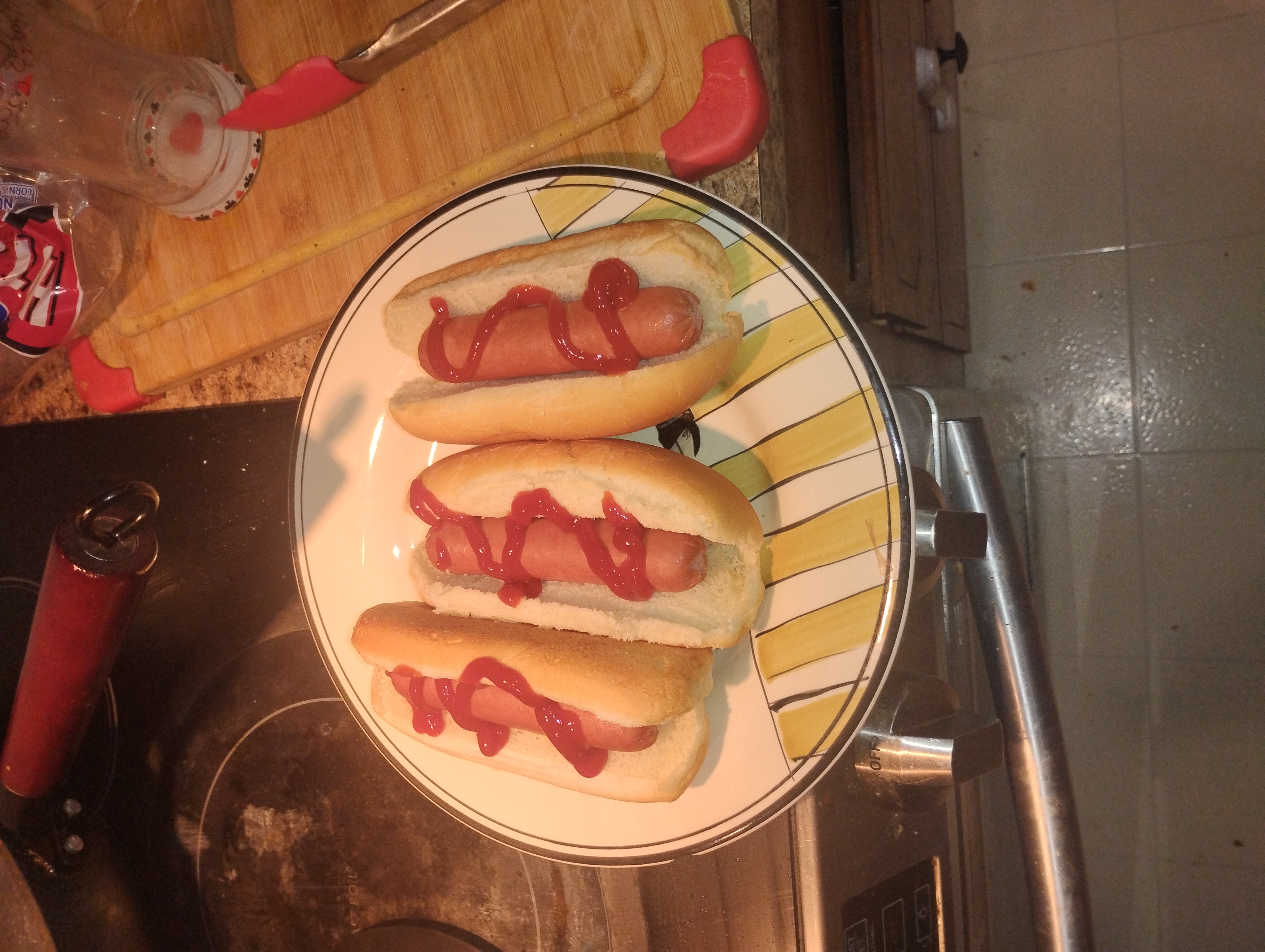 Three hot dogs in the middle of the night. I've got that dog in me.