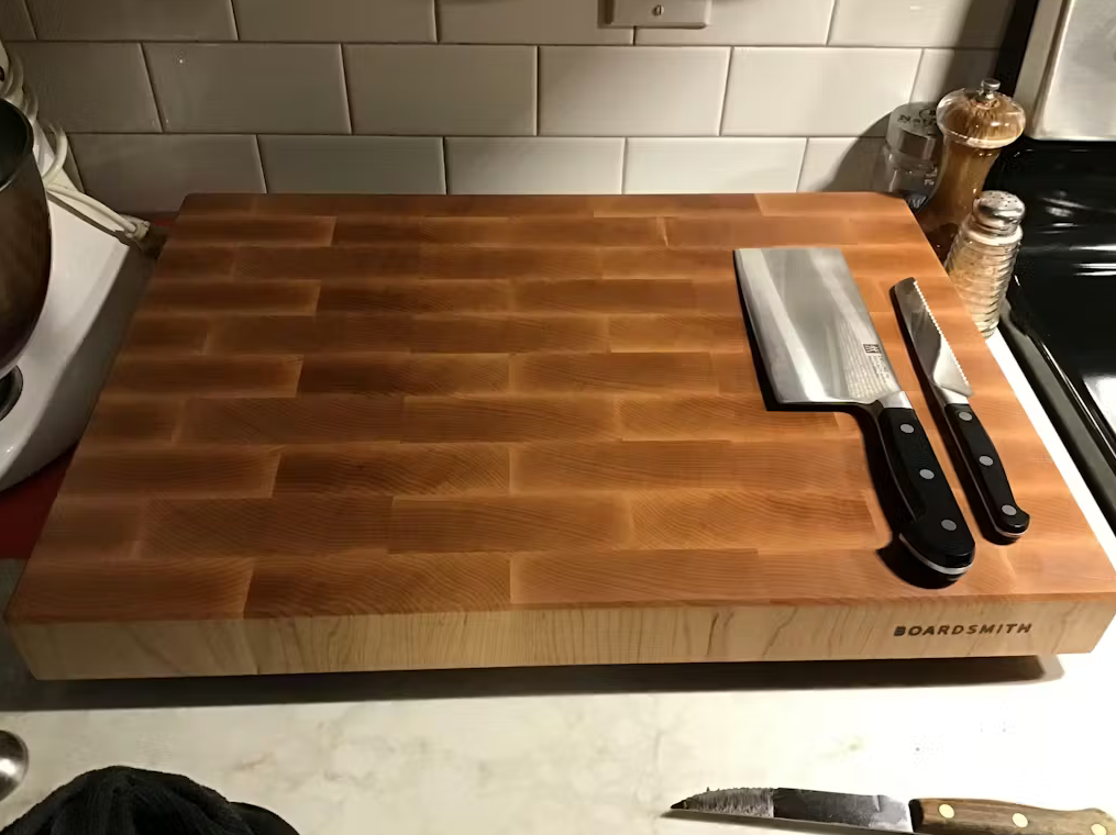 End grain butcher blocks (and giant butcher blocks in general) are total bullshit. >Expensive as hell>You have to keep the wood saturated with mineral oil or else water infiltrates it, swells the wood and causes it to warp and potentially crack. >Also you have to massage oil into it constantly to keep it looking pretty, if you slack off it quickly turns dull and gray looking>But don't oversaturate it with oil either! or else it'll seep through the wood and drip through onto your counter>onions and garlic penetrate the end grain easily and turn it into a giant aromatherapy diffuser filling your house with the aroma of stale onions>you have to mash an apple or potato and smear it all over the board to get rid of the stink. which lasts until the next time you cut onions of course>stains from meat or beets penetrate the grain too and I haven't found a way to get that out short of sanding the fucking board down>the board is so heavy you can't hold it with one hand, turning food transfer and washing into giant chores with extra stepsYou have to put up with all this shit just so you can:>sharpen your knife 10% less oftenComment too long. Click here to view the full text.