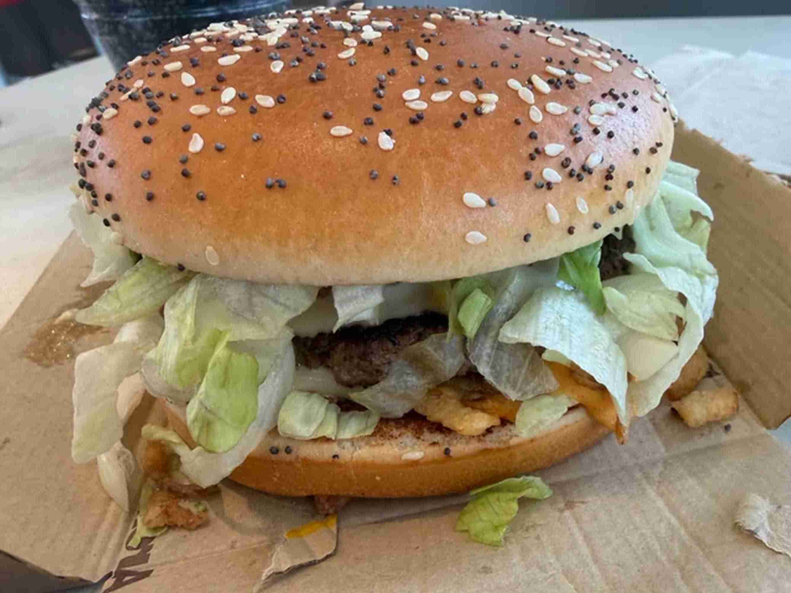>>21921981i usually order a couple of burgers when getting mcdonalds but last night I only bought the B.A. here's my review: It was pleasantly filling, didn't need any other burgers. I'm 6'4" and usually around 250 lbs. first the negatives: the size of the burger made the chopped lettuce and fried onions with the sauce spill out everywhere with each bite. the positives: the bun was very tasty, probably my favorite part of the burger. The patties were very satisfying too. The ensemble of it all was as if a double quarter pounder was a bigmac. I liked it, will probably buy it again. compared to my usual mcdonalds orders of buying multiple burgers, I can just buy the big arch meal and be satisfied at a much cheaper price over all.