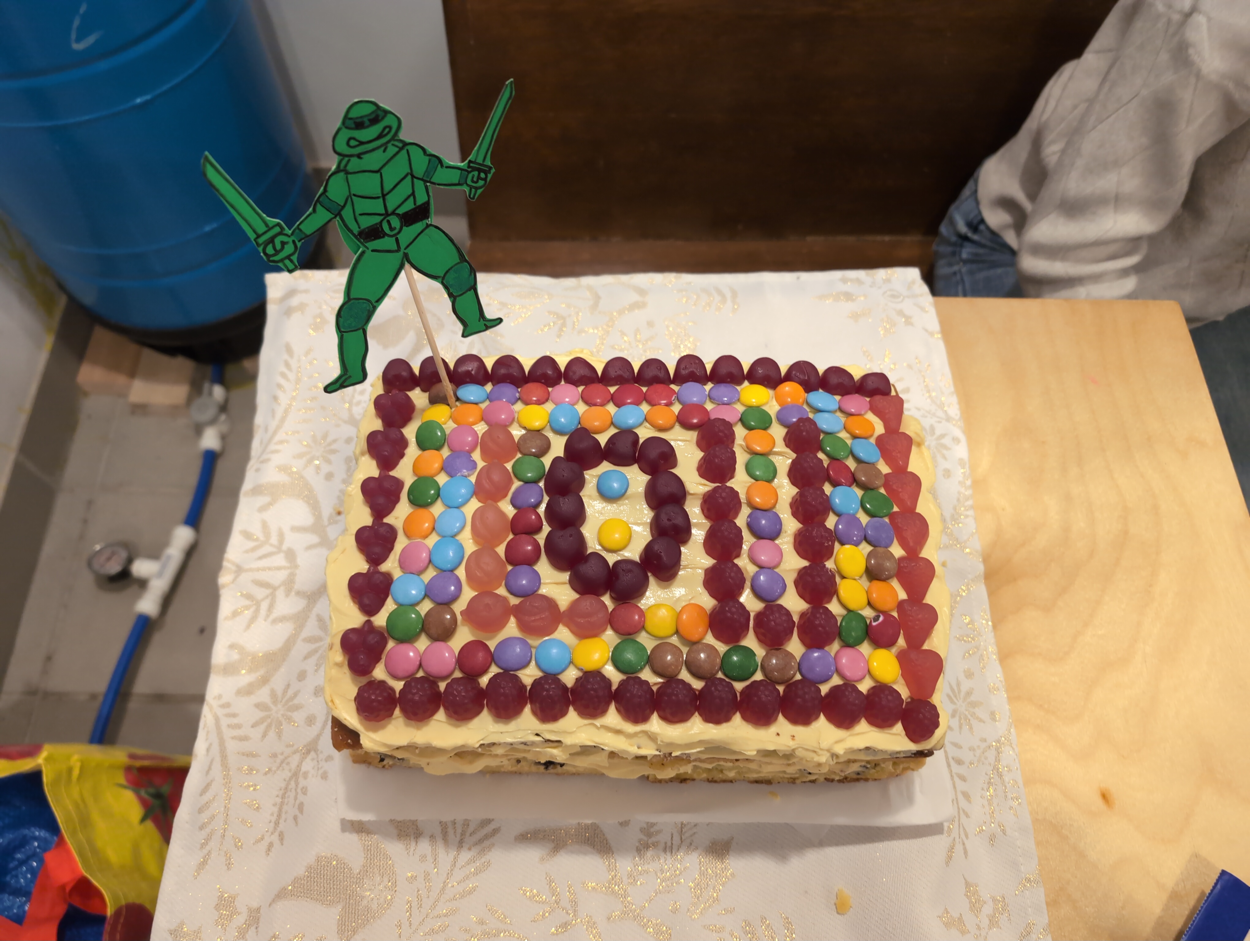 >>21657590I like how that turned out, full but not fussy. And the printed ninja turtle is good too, I don’t like cakes where you’re cutting up a character or animal that’s beloved