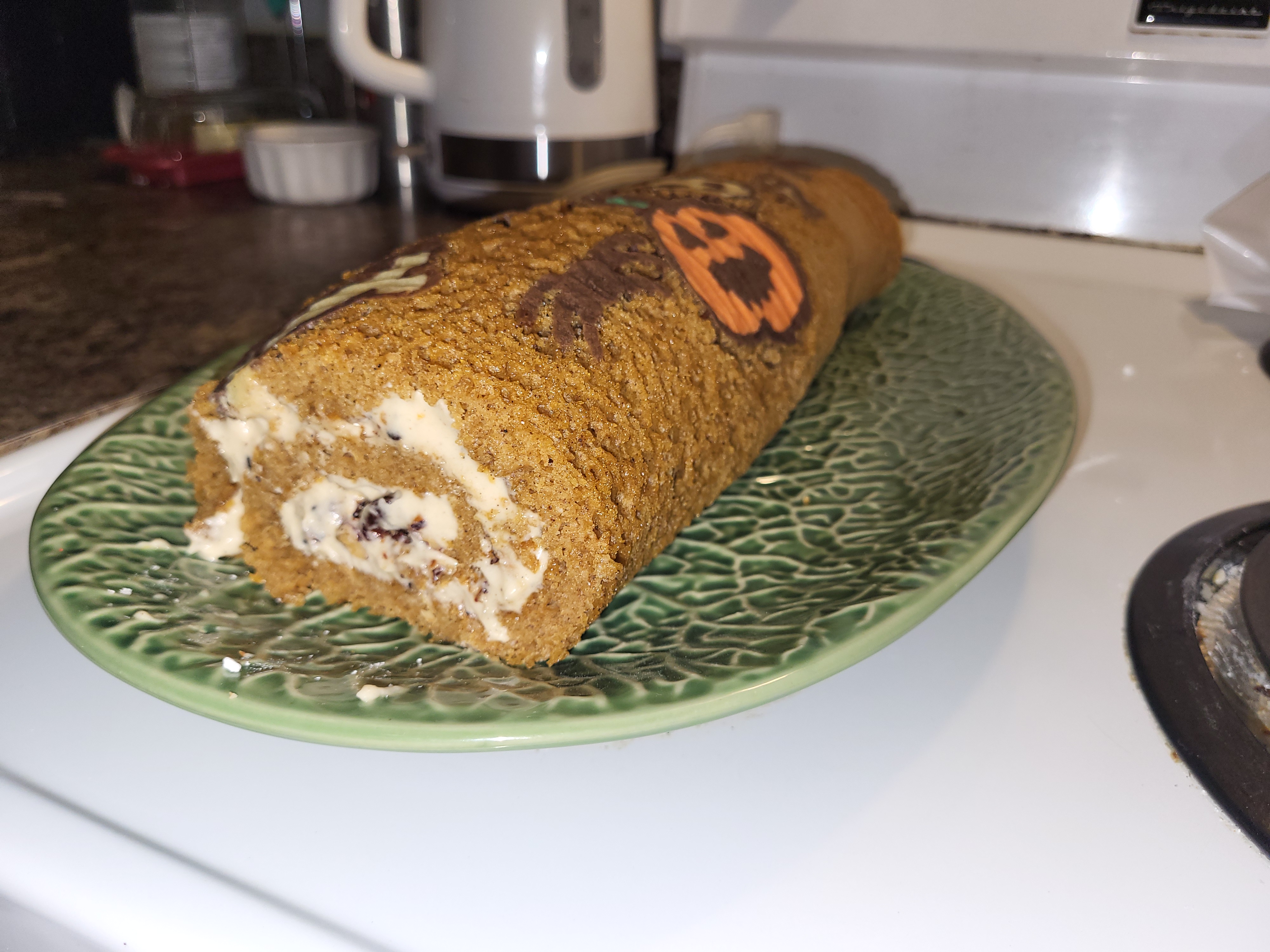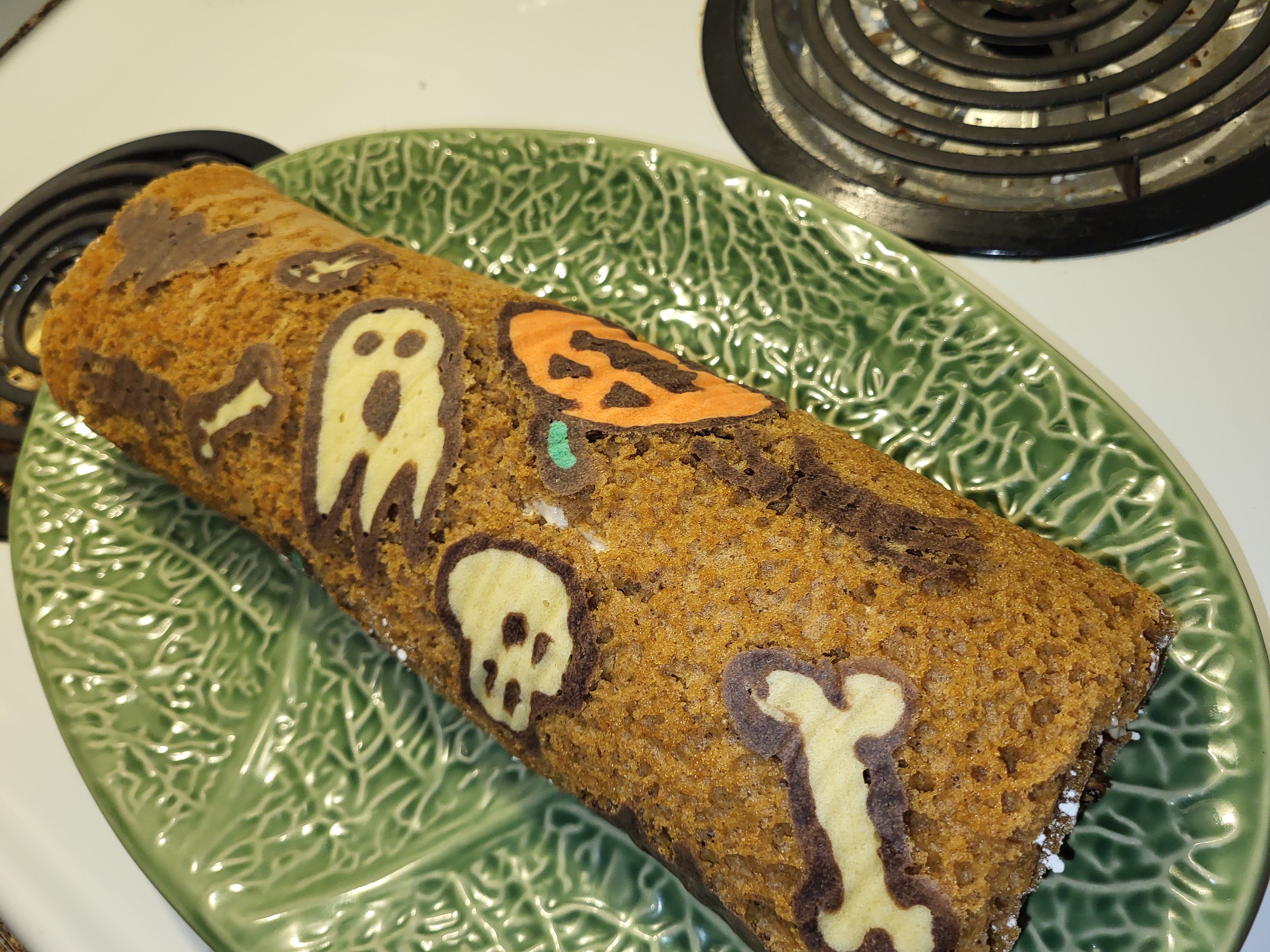Ugly Cake Anon with a new one fresh out of the oven. Pumpkin swiss roll, fucked up some of my art by trying to pipe the outlines too small, should have started over from the start but some of them didn't turn out too bad.