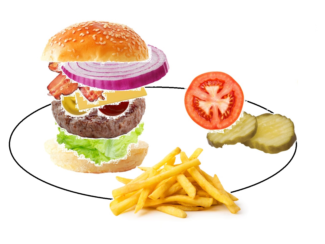 >>21659798T.bunBaconTomato Lettuce Onion Pickles Ketchup and mustard Beef patty Cheese B.bun