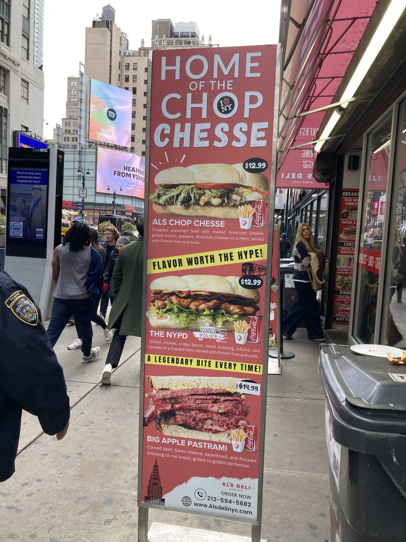 >>21688398I figured they used AI to generate it. The fuck is a "chop chesse"? Is it anything like a "chop(ped) cheese?" It also lists American cheese twice, and despite saying nothing about lettuce and tomato it's in the picture. Conversely the NYPD says it has tomato but there's none shown.