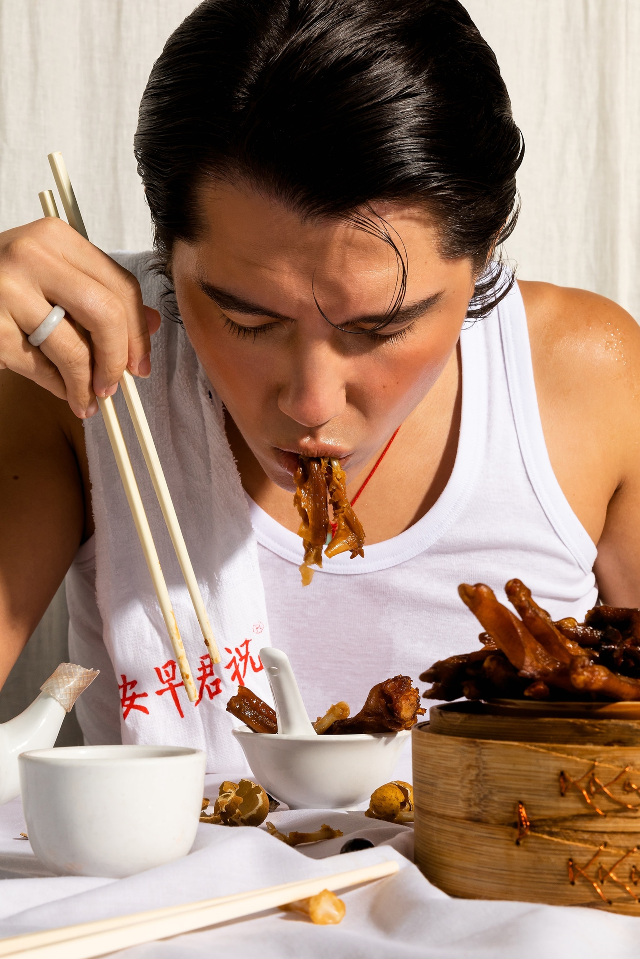 Asians don't have the same table etiquette. Slurping and mouth noises are not considered rude.